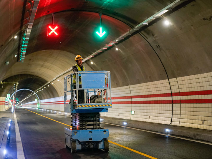 2025年9月28日,中鐵十一局的工人在四川夾金山隧道內(nèi)進行收尾巡查施工。新華社記者 王曦 攝