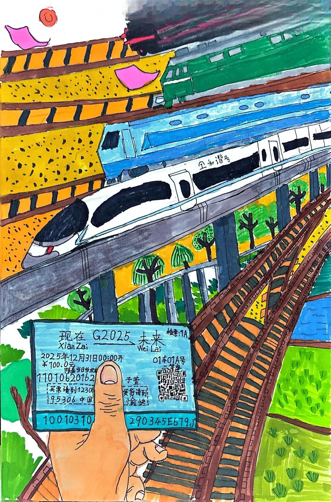 現(xiàn)在我坐在復(fù)興號里,看電子屏上顯示列車時速達到350公里,青檀樹在窗外連成流動的綠瀑。乘務(wù)員推著餐車經(jīng)過,玻璃幕墻外閃過曲阜孔廟的金色鴟吻。包里裝著曾曾祖父的鐵路修建圖影印件,那些泛黃的等高線正被新時代的測繪儀重新勾勒。