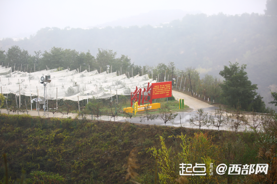 果園搭建的防雹網(wǎng),防止冰雹打壞蘋果。