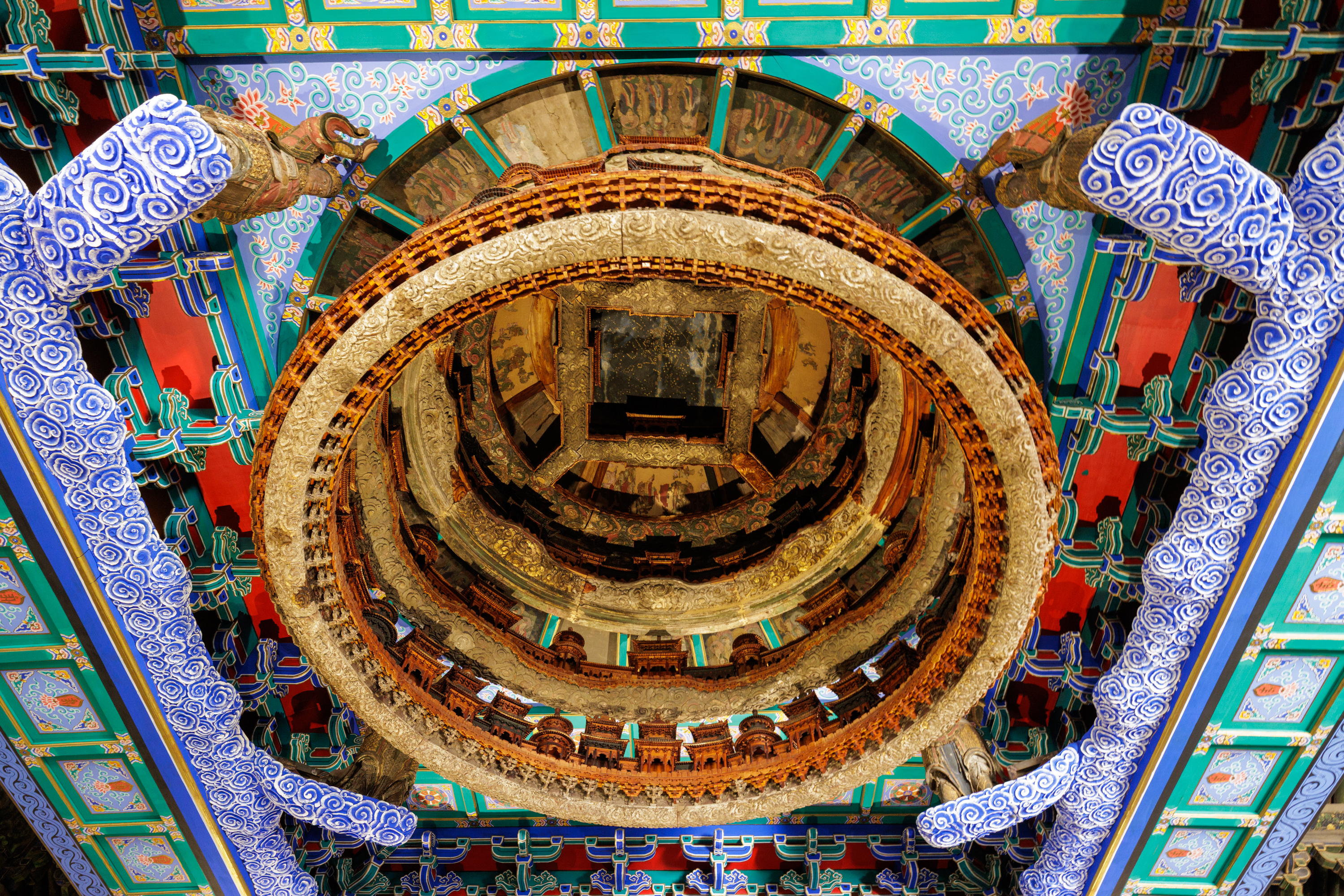 萬善正覺殿天宮藻井是國家一級文物,原為北京隆福寺的建筑構(gòu)件,受1976年地震影響被拆成散件,后被運到北京古代建筑博物館保存,經(jīng)過長達5年的修復才基本恢復原貌,是北京古代建筑博物館的鎮(zhèn)館之寶。