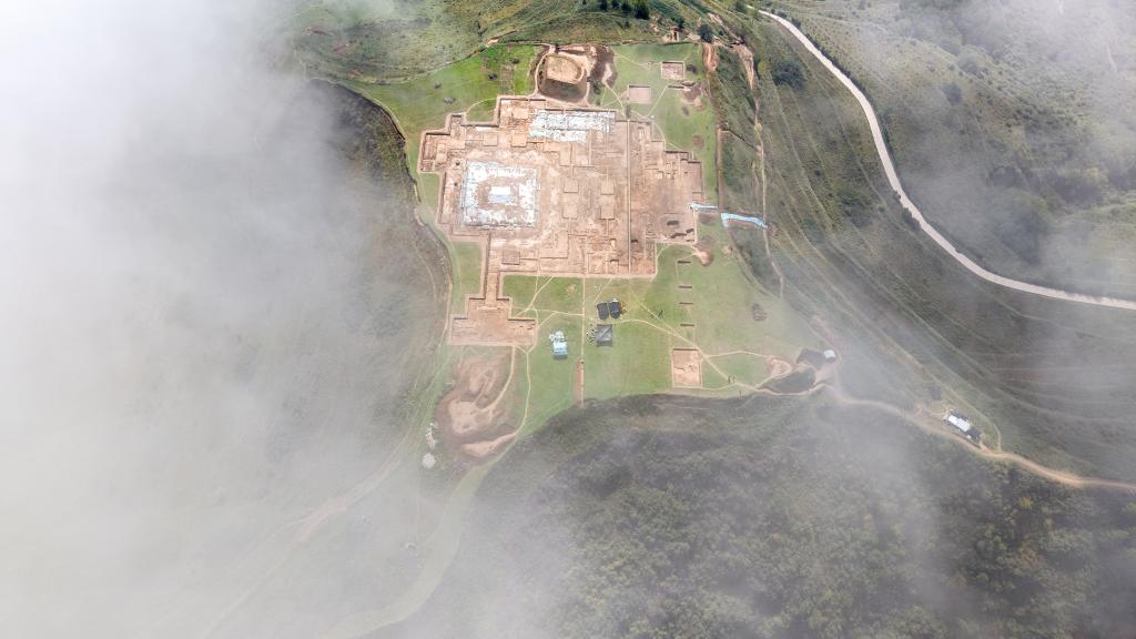 這是10月15日拍攝的甘肅省隴南市禮縣四角坪遺址考古發(fā)掘現(xiàn)場(無人機照片)。新華社記者 郎兵兵 攝