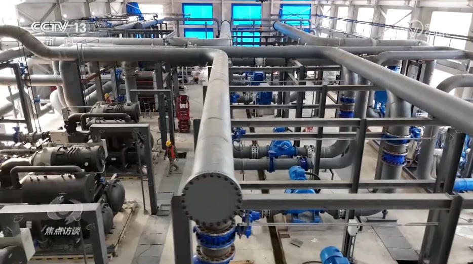 地熱能源站是整個清潔熱源項目的樞紐。地熱水從地下1500米抽上來,要先在地熱能源站提取熱量,再用這些熱量加熱自來水,然后把加熱好的水通過管道送到居民家實現(xiàn)供暖。往百姓家送水的出水口溫度高低,直接決定了居民家里暖不暖。