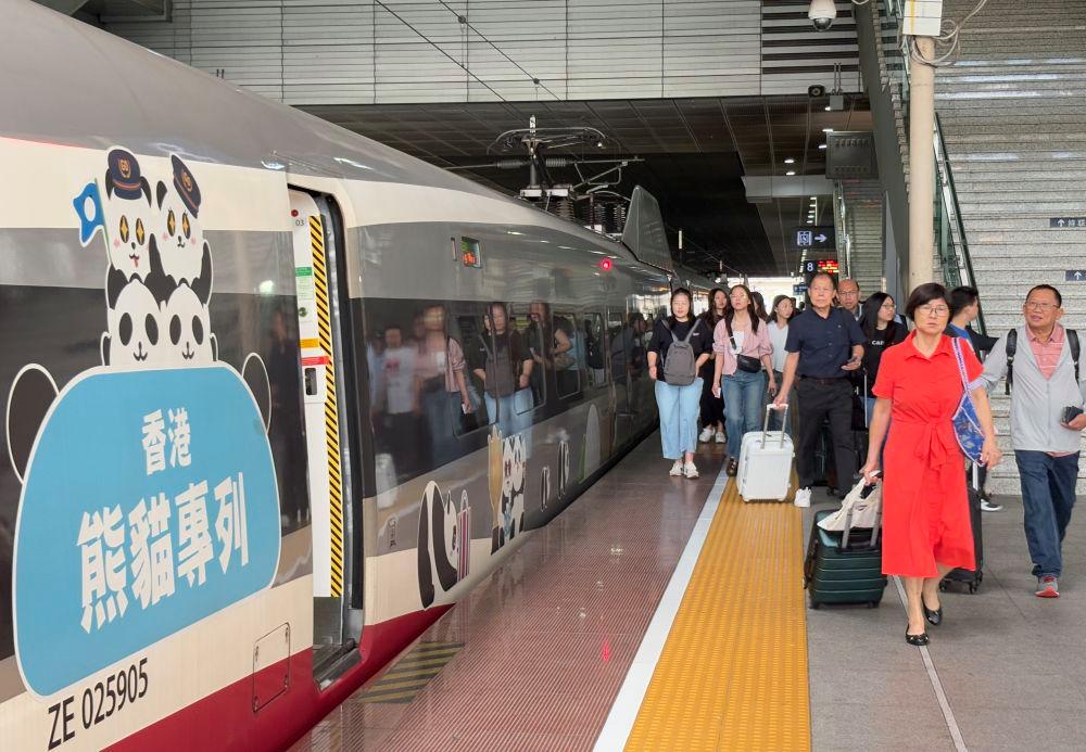 4月27日,往返深港的高鐵列車??吭谏钲诒闭菊九_(tái)。新華社發(fā)