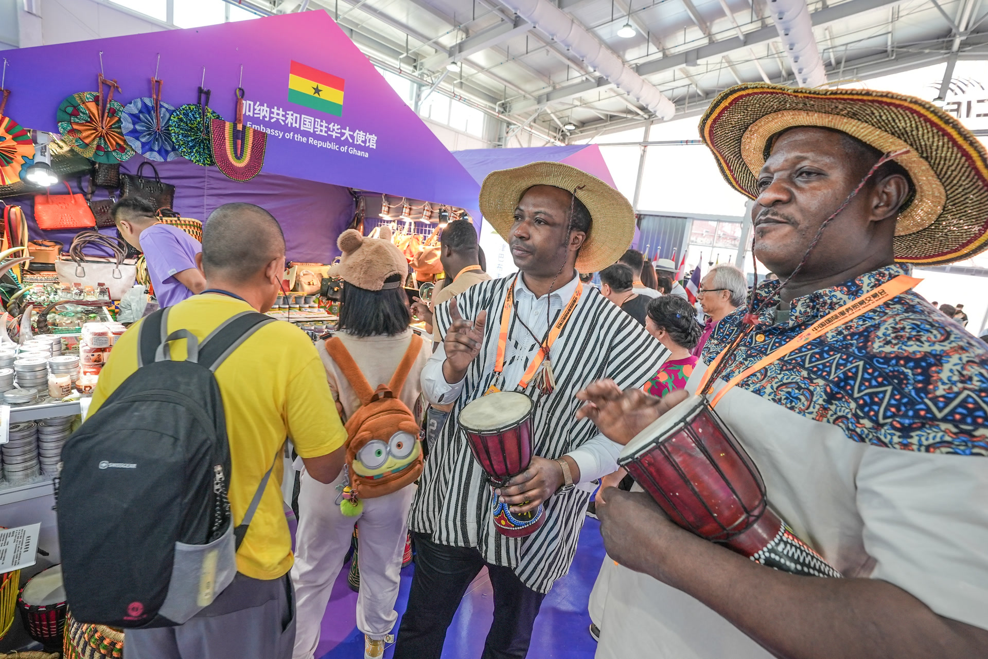 在服貿會首鋼園展區(qū),外籍展商在現(xiàn)場表演,展示本國文化。武亦彬攝