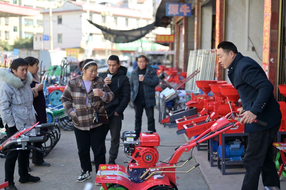 2025年2月9日,在湖南省婁底市雙峰縣農(nóng)機市場,農(nóng)戶在選購小農(nóng)機。新華社發(fā)(李建新 攝)