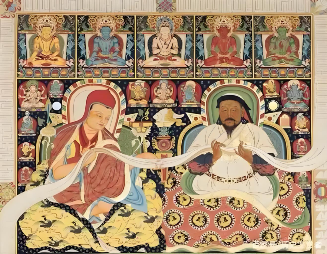 蒙古族自元朝以來(lái)普遍信仰藏傳佛教,也改變了中國(guó)北方和西北民族、邊疆的政治、地域和宗教文化面貌。同時(shí),蒙古人長(zhǎng)期以來(lái)在西藏地方的政治和宗教史上都扮演了極為重要的角色,從八思巴與忽必烈,到三世達(dá)賴(lài)?yán)锱c俺答汗、五世達(dá)賴(lài)?yán)锱c固始汗,他們之間都建立起了“施供關(guān)系”,體現(xiàn)了蒙藏之間緊密的政教關(guān)系。