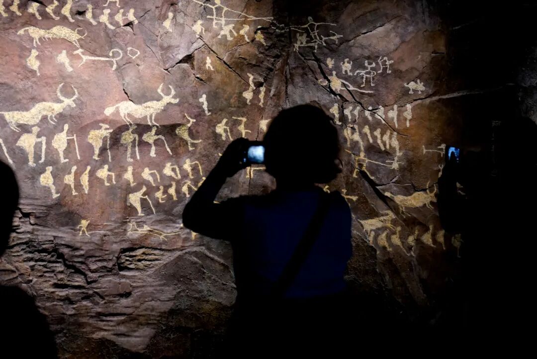 2024年10月19日,西藏拉薩,參觀者在西藏博物館內(nèi)拍攝巖畫。 中新社記者 李林 攝