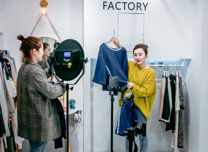 在常熟服裝城,商家在進(jìn)行網(wǎng)絡(luò)直播銷(xiāo)售(資料照片)。新華社發(fā)