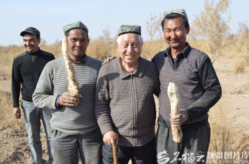 2016年劉銘庭(中)和種植肉蓯蓉的群眾合影。新疆圖片庫(kù)供圖