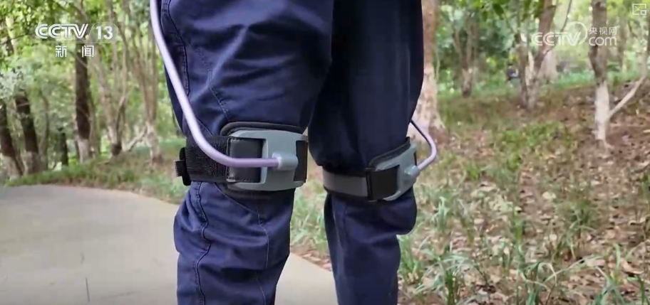 這套外骨骼機器人能夠提供拉力,帶動腿部運動,可以為登山人節(jié)省大約30%的體力消耗。