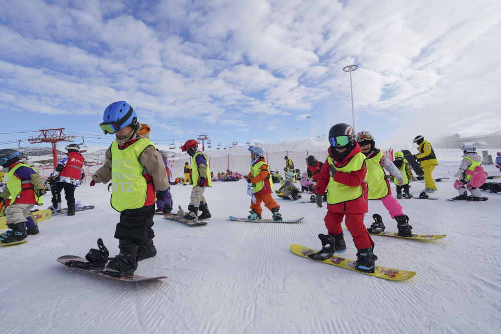 12月1日,學(xué)生在阿勒泰將軍山國(guó)際滑雪度假區(qū)練習(xí)單板滑雪。新華社記者 阿曼 攝