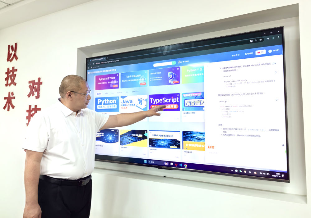 中科銳眼(天津)科技有限公司負(fù)責(zé)人介紹數(shù)字技能應(yīng)用的“虛擬課堂”(石鑫 攝)
