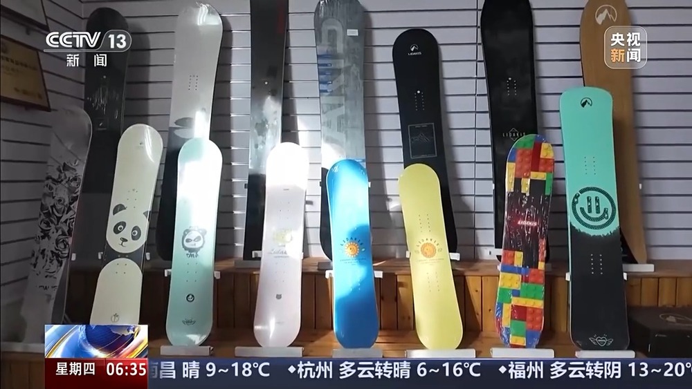 某冰雪裝備生產(chǎn)企業(yè)負(fù)責(zé)人 靳惠媛:2002年的時候,我正好是做外貿(mào)生意,趕上一個冬博會,走到一個展位上,全是板子。那時候沒有見過這樣的滑雪板。他說剛剛進(jìn)入中國,在國外特別流行了,就進(jìn)貨了10塊單板。
