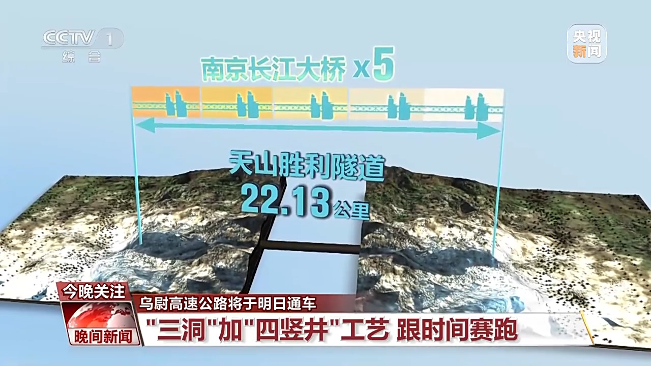 22.13公里,長(zhǎng)度約為5座南京長(zhǎng)江大橋的總和,要在天山中打通這樣的一條隧道,中國(guó)的建設(shè)者是如何啃下這塊硬骨頭的呢?和以前挖隧道大多采用“雙洞對(duì)挖”的方式不同,這次天山勝利隧道為了跟時(shí)間賽跑,采用“三洞”加“四豎井”工藝。