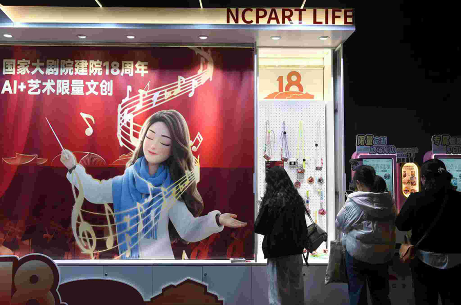 圖為觀眾在國家大劇院選購文創(chuàng)產(chǎn)品。新華社記者 羅曉光 攝