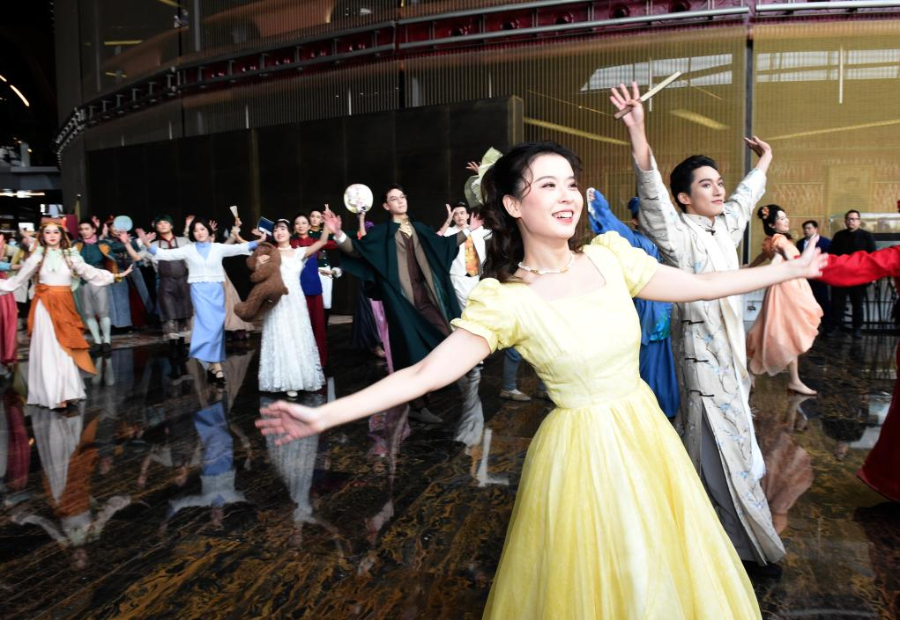 圖為演員在國家大劇院公共空間與觀眾互動(dòng)。新華社記者 羅曉光 攝