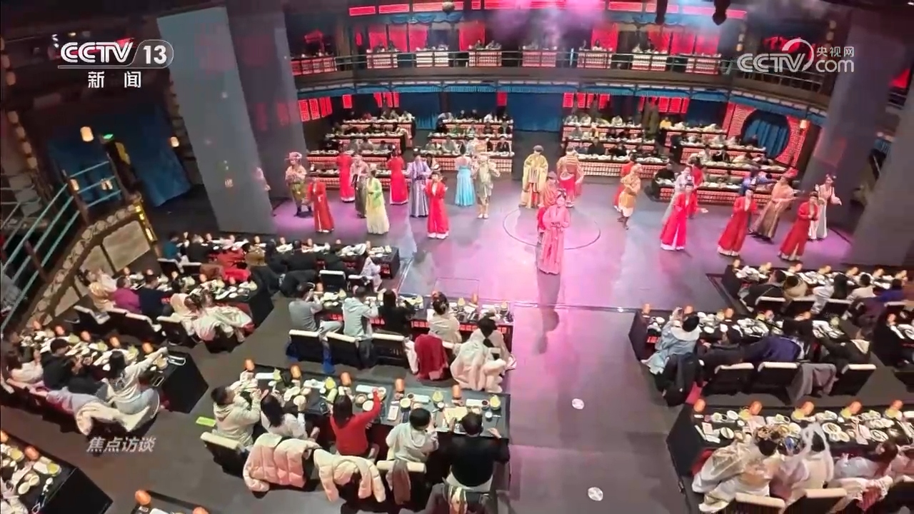 《清明上河·宋宴》是全國首個宋文化沉浸式餐秀,通過“宴席+演藝+科技”的創(chuàng)新形式,讓游客化身北宋汴京雅士,跟著宋代名人的腳步風(fēng)雅入宴。