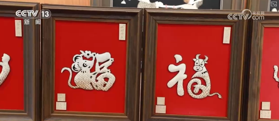 與江南魚燈相映成趣的,是扎根黑土地的吉林省級非遺——查干湖魚皮制作技藝。在“禮遇吉林”非遺體驗店,魚皮經(jīng)洗料、鞣制、剪刻、拼貼等工序,變身充滿民族風(fēng)情的精美藝術(shù)品。