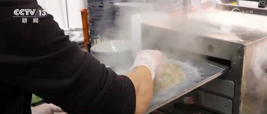 腸粉店老板陳軒豪介紹,米漿里水的比例也很關(guān)鍵,他們會根據(jù)當天的天氣進行調(diào)整,比如天氣炎熱潮濕的時候,就需要少放一點水,不然蒸出來口感就會比較軟爛。夏天還會放一些冰,防止米漿變質(zhì)。