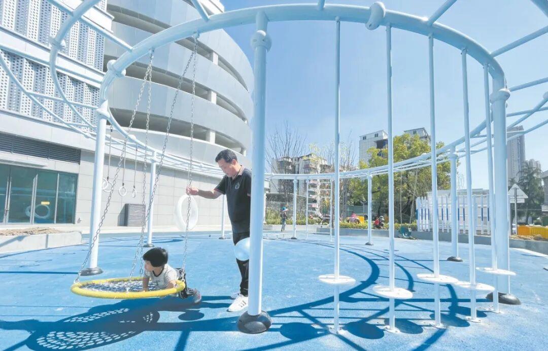 漢陽(yáng)區(qū)知音東苑小區(qū)停車樓一側(cè)建有兒童娛樂區(qū),成為小朋友的快樂天地。記者冷靖華 攝