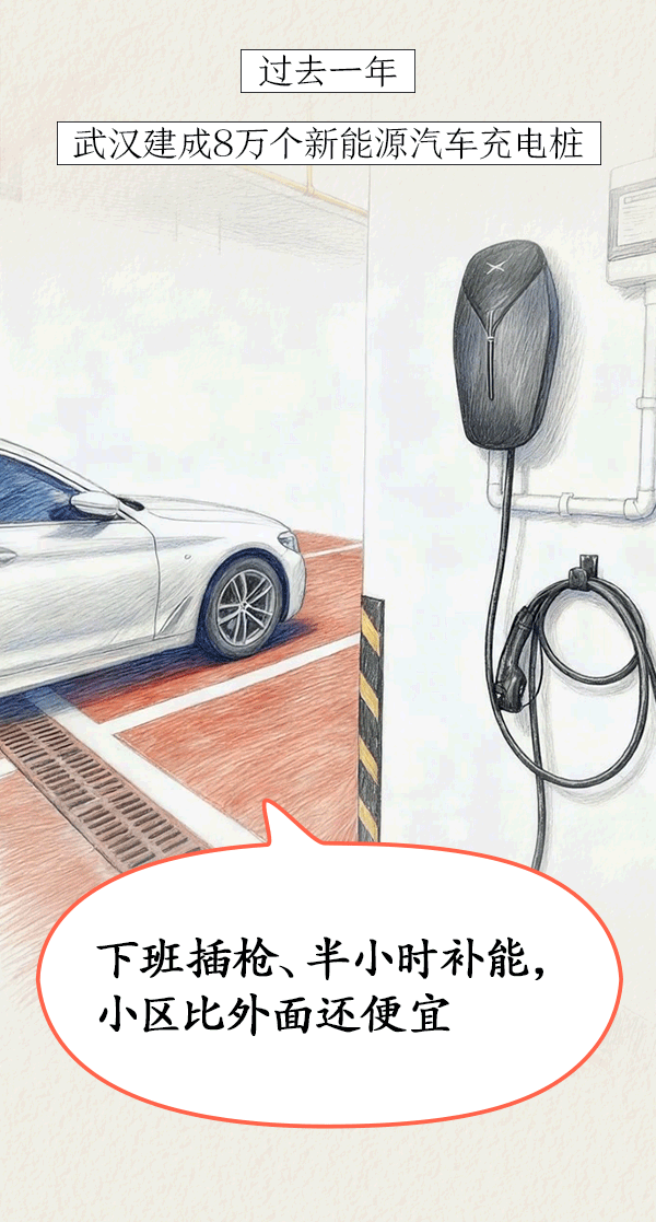 過去一年,武漢新增20.59萬個(gè)停車位,建成8萬個(gè)新能源汽車充電樁,將“續(xù)航焦慮”化解于市民家門口。