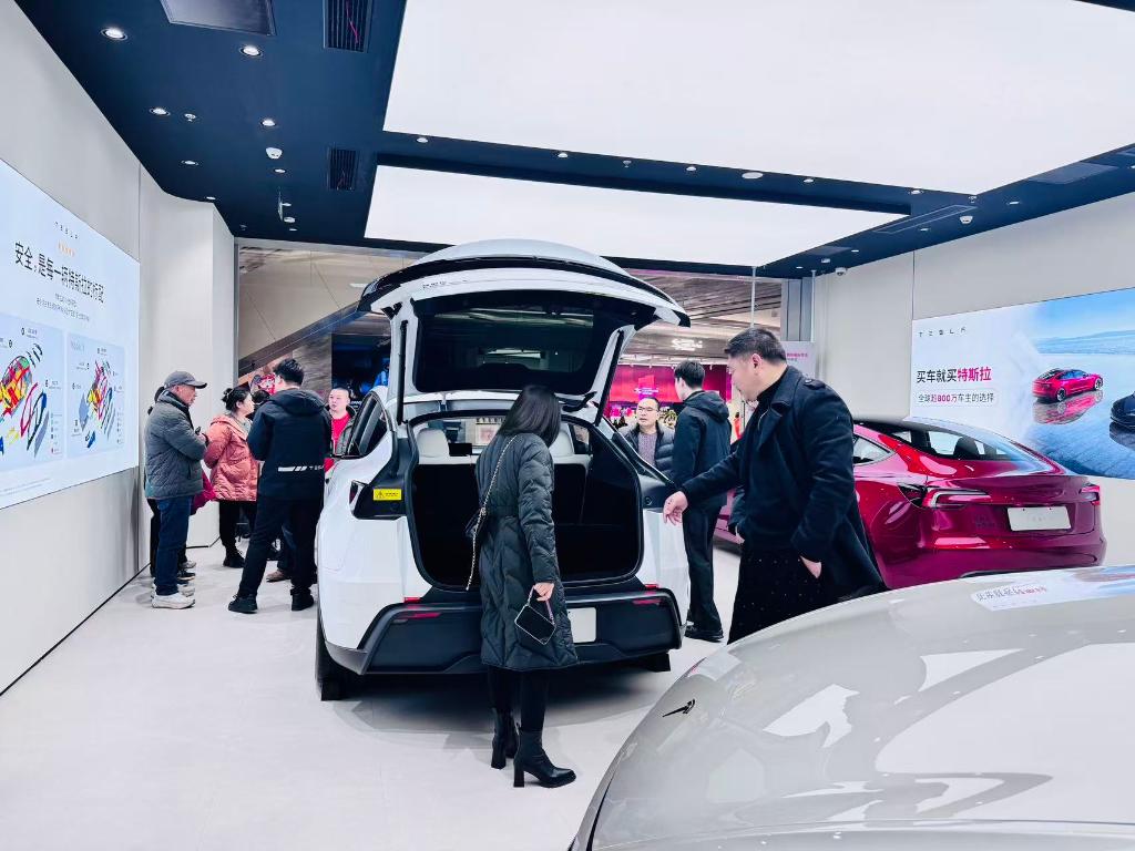 2026年1月6日,市民在武漢武昌萬(wàn)象城內(nèi)一家特斯拉門(mén)店看車(chē)。新華社記者 龔聯(lián)康 攝