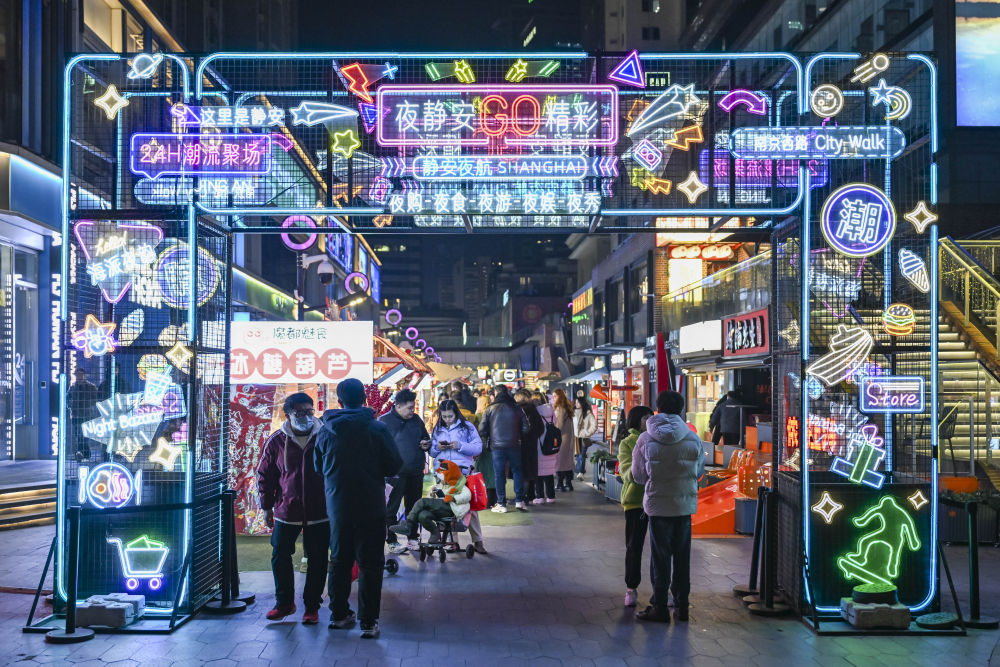 這是1月7日在上海市靜安區(qū)吳江路拍攝的夜間市集現(xiàn)場(chǎng)。新華社記者陳浩明 攝