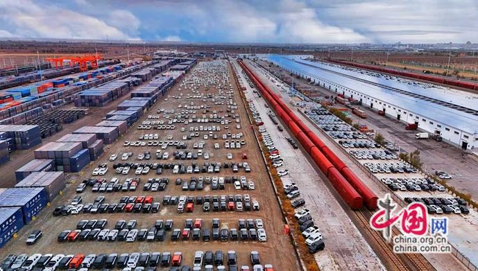 高頻通行,助推樞紐能級躍升。新疆位處西北邊境,雖物產(chǎn)豐富,以往受限于地理位置,難以充分參與國際貿(mào)易。但隨著共建“一帶一路”深入推進,中歐班列飛速興起,霍爾果斯鐵路口岸站逐漸成為班列西通道的關(guān)鍵節(jié)點。目前,該口岸中歐(中亞)班列日均通行量在27列以上,平均每2小時完成一列入境返程中歐班列的換裝工作,其與阿拉山口口岸站共同貢獻了全國五成以上的中歐班列通行量。隨著班列開行量越來越大,不僅越來越多的日用百貨、機電設(shè)備、農(nóng)副產(chǎn)品等“中國制造”選擇從新疆鐵路口岸走向中亞、歐洲市場,也吸引了汽車組裝、電子產(chǎn)品加工等產(chǎn)業(yè)在口岸周邊聚集,推動“通道經(jīng)濟”向“口岸經(jīng)濟”“產(chǎn)業(yè)經(jīng)濟” 轉(zhuǎn)型,讓新疆正成為輻射亞歐的國際物流與貿(mào)易樞紐。