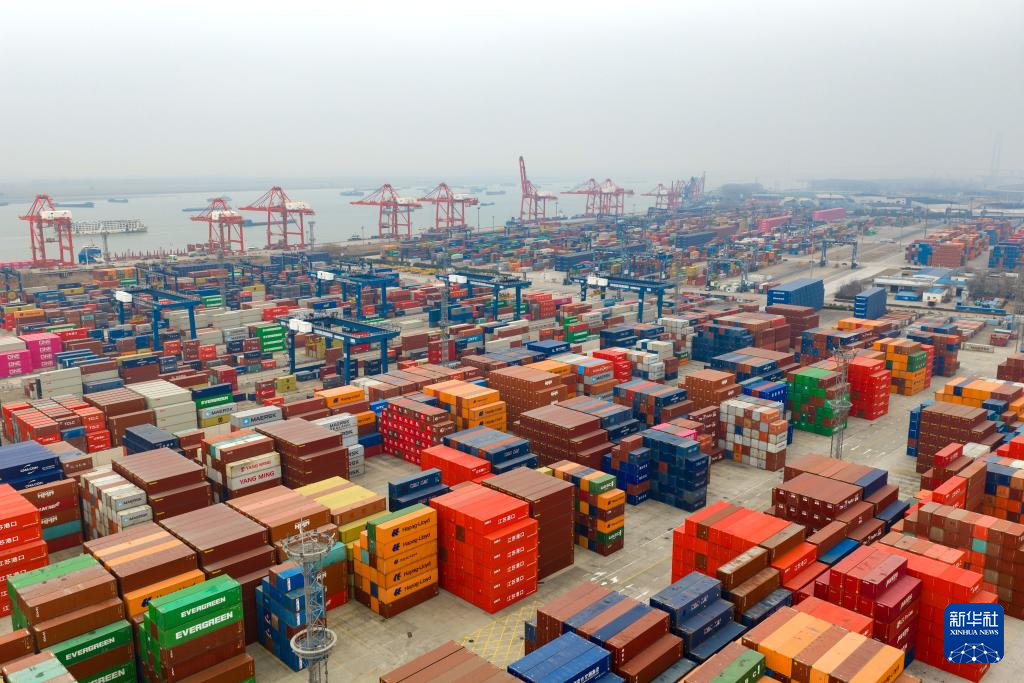 1月18日拍攝的江蘇省港口集團南京港龍?zhí)都b箱碼頭(無人機照片)。新華社發(fā)(楊素平攝)