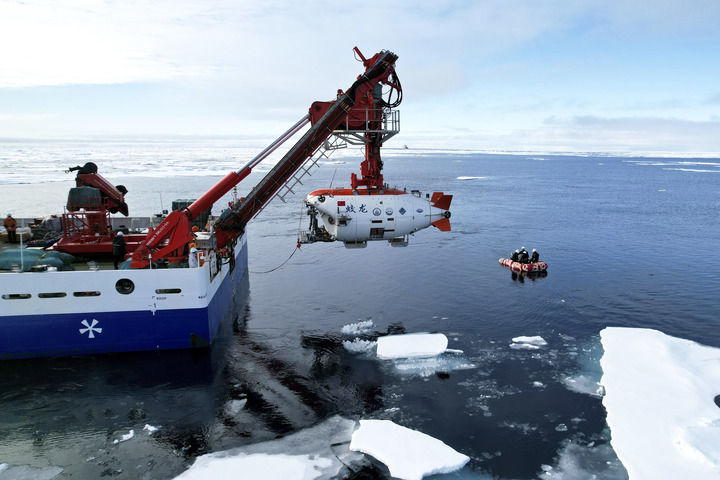 2025年8月11日,“蛟龍”號在北極冰區(qū)準(zhǔn)備下潛。新華社記者 劉詩平 攝