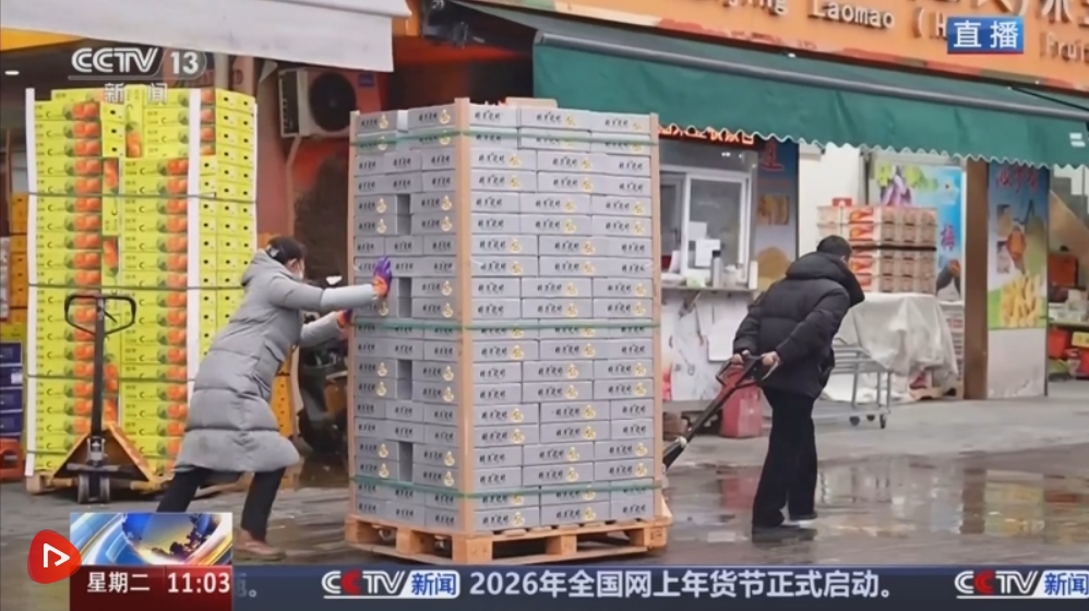 記者來(lái)到南京農(nóng)副產(chǎn)品物流配送中心,這里又被稱為眾彩市場(chǎng)。市場(chǎng)上,大型貨柜車進(jìn)進(jìn)出出,非常繁忙,裝載著來(lái)自全國(guó)乃至全球的農(nóng)產(chǎn)品。這里既是南京的“菜籃子”,也是服務(wù)南京都市圈約2000萬(wàn)人口的重要的保供樞紐,在1月19日,僅水果一個(gè)品類,這里的到貨量就超過(guò)了2200噸。