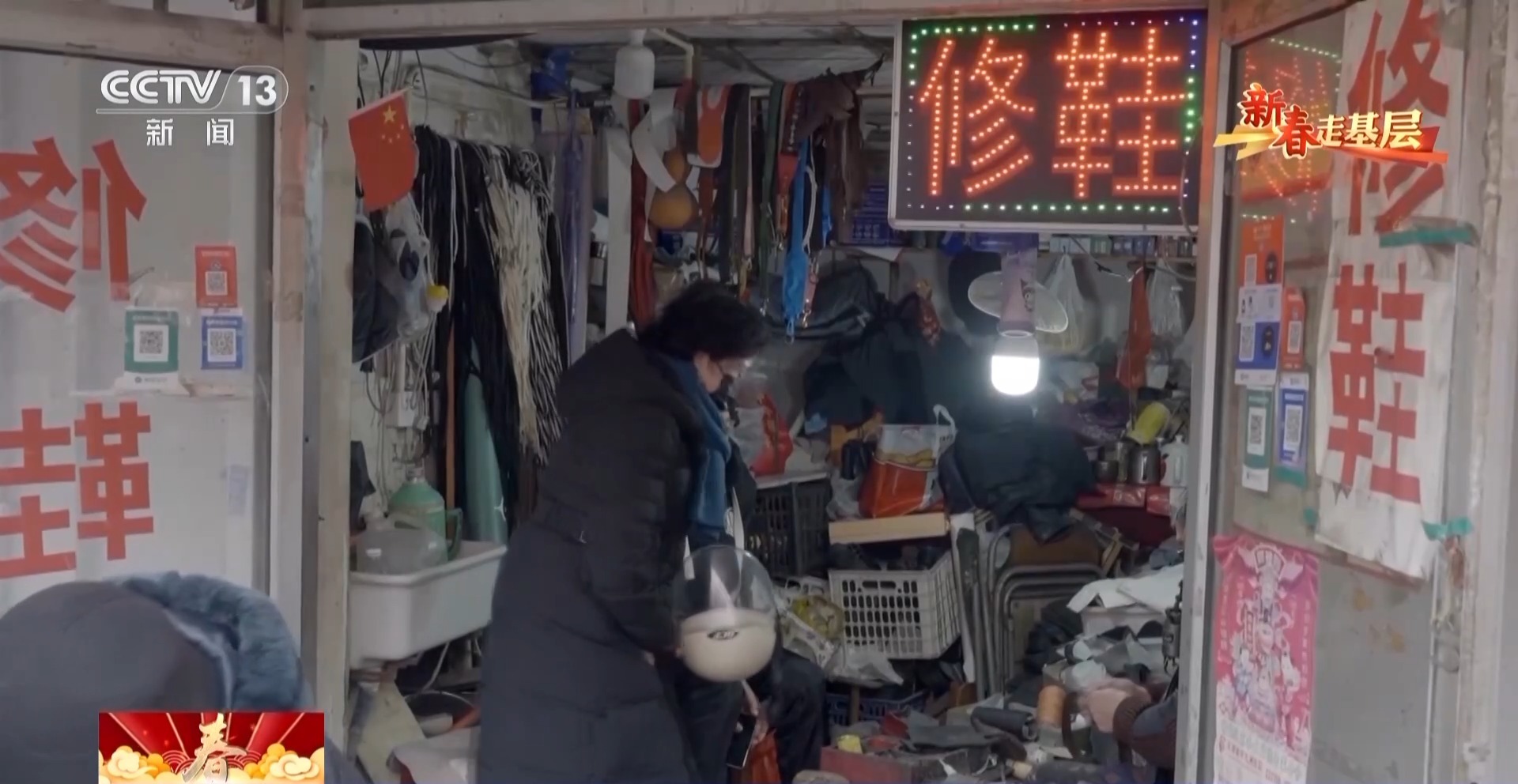 早上9點,天津市河北區(qū)王串場街道的“修補”巷里,賣東西的吆喝聲、街坊的嘮嗑聲此起彼伏。臨近春節(jié),附近居民的修補需求明顯增多,修鞋、磨刀、縫補衣物……一家家不起眼的小鋪里,來來往往的市民絡(luò)繹不絕。