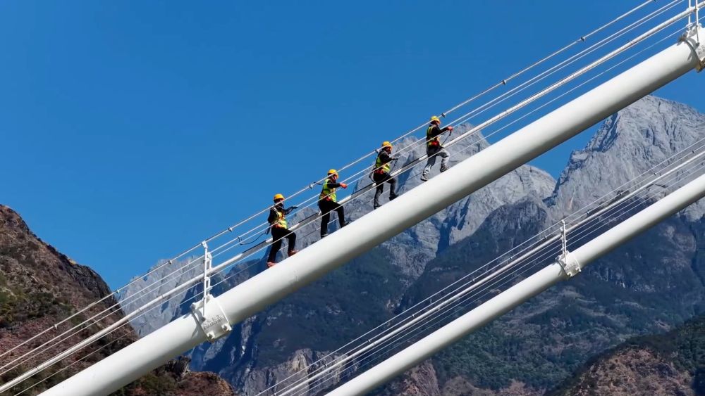 春運期間,國鐵昆明局廣通工電段新尚橋路工區(qū)的守護者們定期對虎跳峽金沙江鐵路大橋進行“體檢”,他們被譽為“雪山飛狐”。