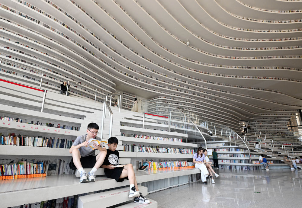 2024年8月27日,市民在天津?yàn)I海新區(qū)圖書館內(nèi)閱讀。有著“濱海之眼”之稱的濱海新區(qū)圖書館位于天津?yàn)I海文化中心,目前已成為天津?yàn)I海新區(qū)的文化“新地標(biāo)”。