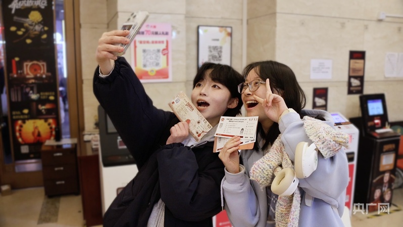 史好在亞洲大廈取票處與朋友合影(央廣網(wǎng)記者 何智康 攝)