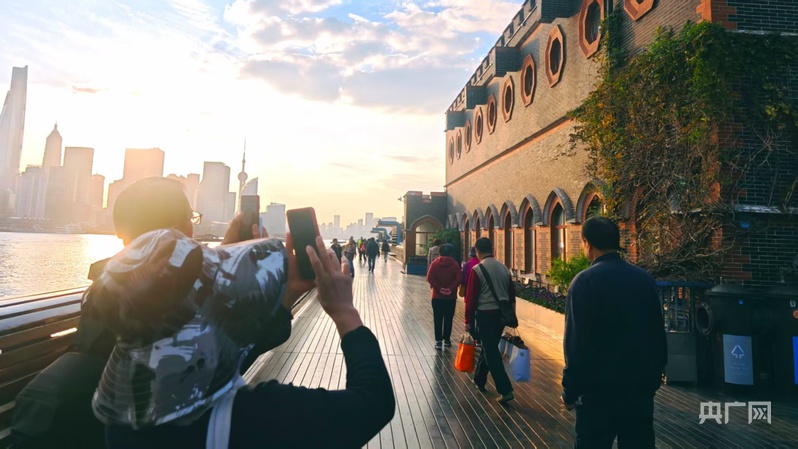 市民游客漫步楊浦濱江岸線,不時(shí)駐足“打卡”(央廣網(wǎng)記者 馮麗 攝)