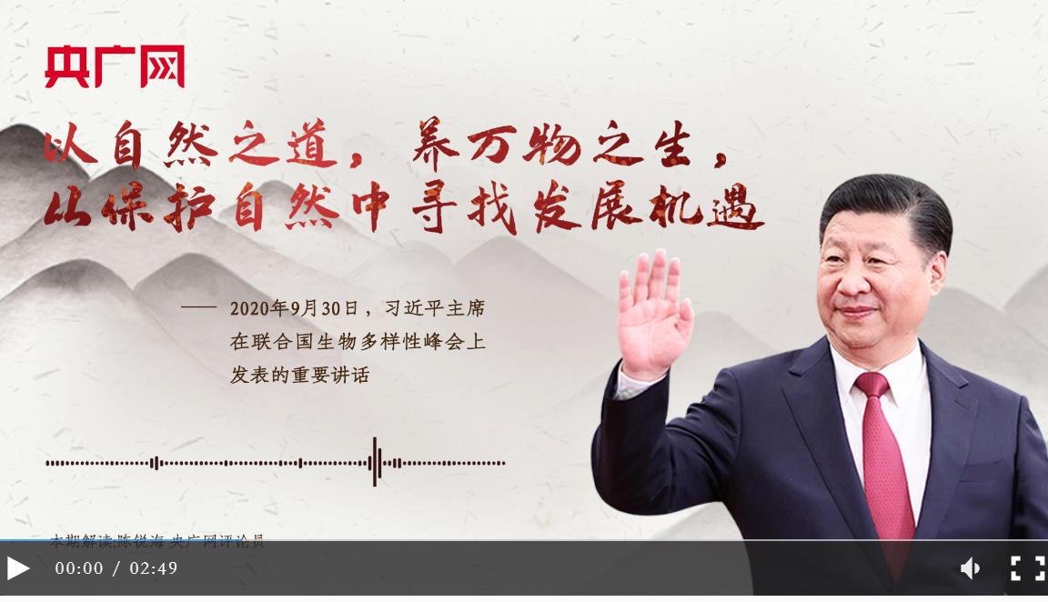這段話出自2020年9月30日習(xí)近平主席在聯(lián)合國生物多樣性峰會(huì)上發(fā)表的重要講話。