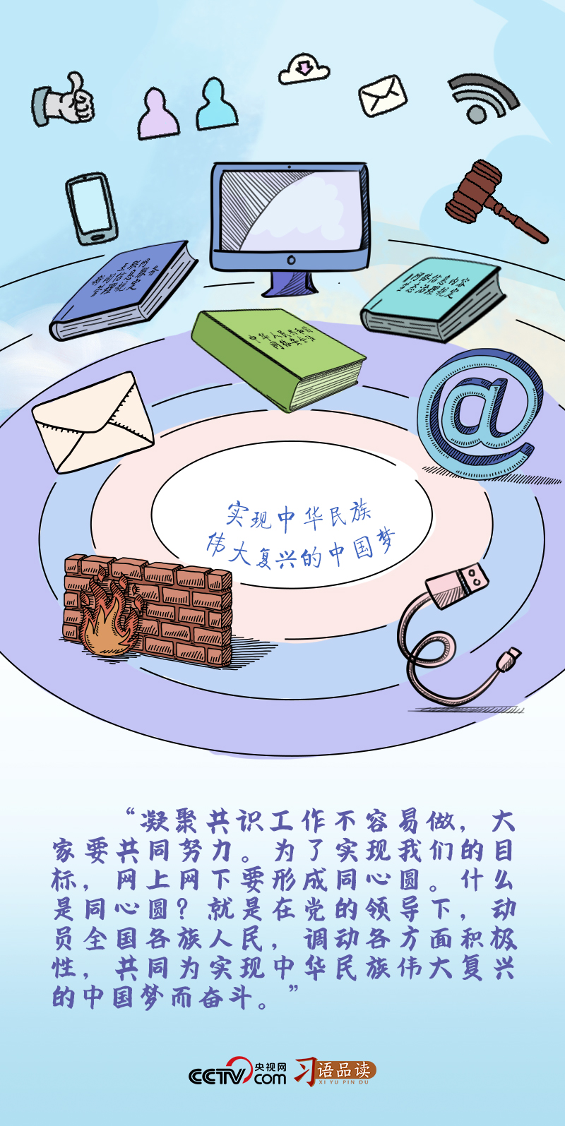 “網(wǎng)上網(wǎng)下要形成同心圓”“形成最大公約數(shù),畫出最大的同心圓”……習(xí)近平總書記曾多次用“同心圓”這一比喻指明推進網(wǎng)絡(luò)強國建設(shè)、促進網(wǎng)信事業(yè)發(fā)展的方向。