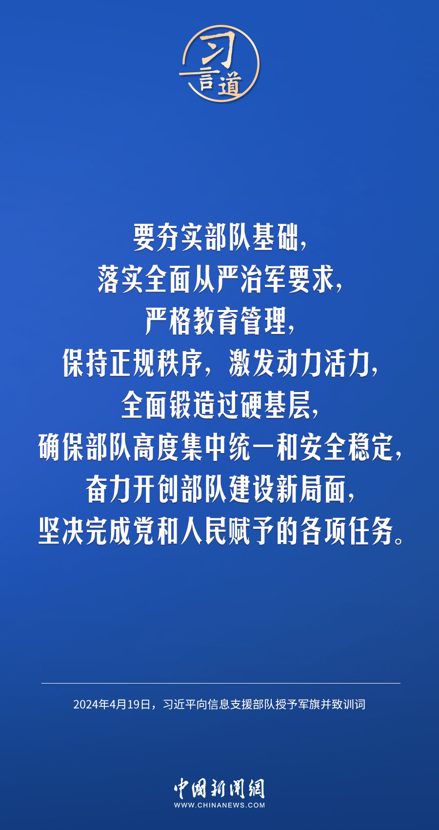 中國人民解放軍信息支援部隊成立大會19日在北京八一大樓隆重舉行。中共中央總書記、國家主席、中央軍委主席習(xí)近平向信息支援部隊授予軍旗并致訓(xùn)詞,代表黨中央和中央軍委向信息支援部隊全體官兵致以熱烈祝賀。他強(qiáng)調(diào)——