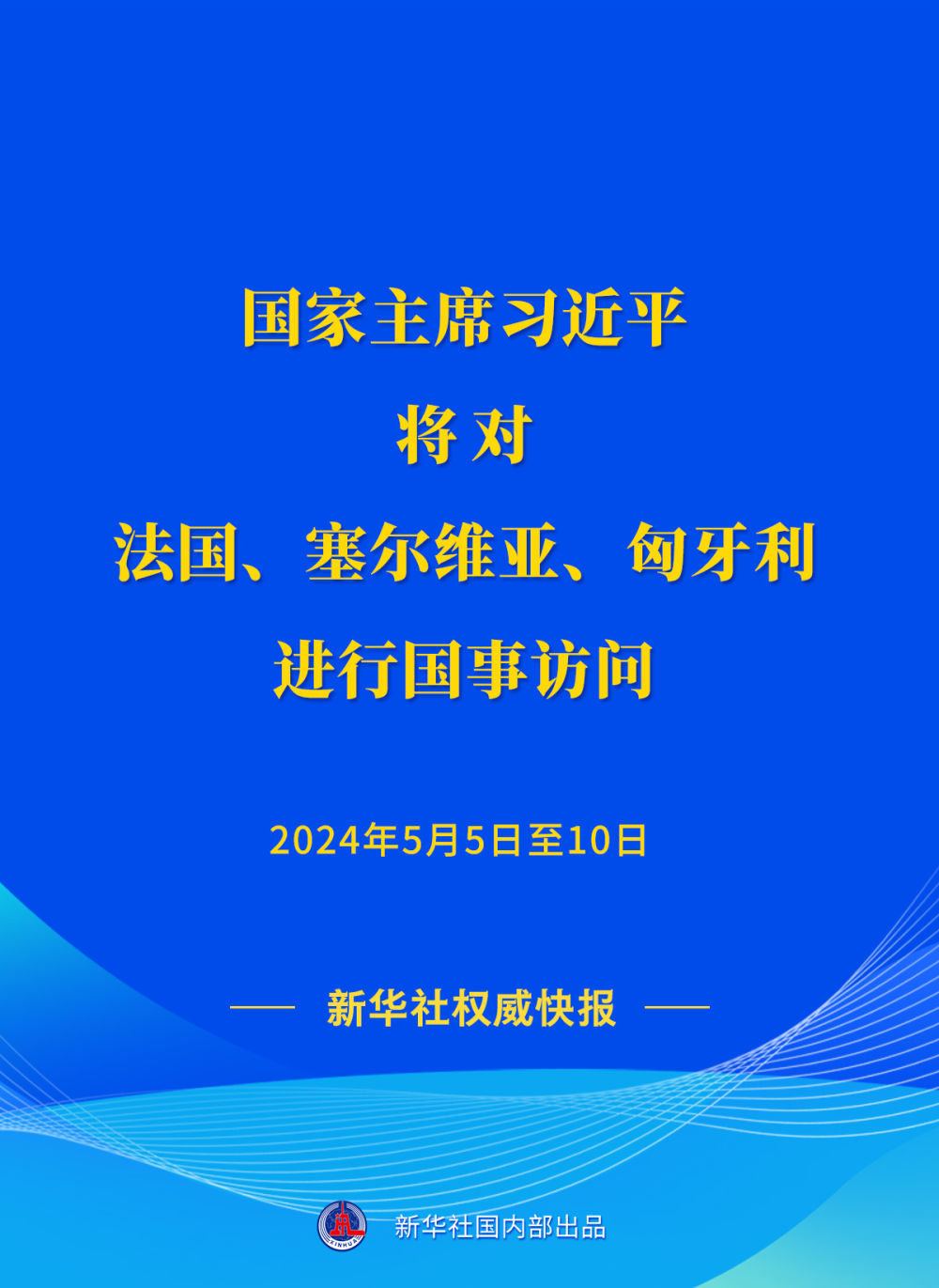 外交部發(fā)言人華春瑩4月29日宣布:應(yīng)法蘭西共和國總統(tǒng)馬克龍、塞爾維亞共和國總統(tǒng)武契奇、匈牙利總統(tǒng)舒尤克和總理歐爾班邀請,國家主席習近平將于5月5日至10日對上述三國進行國事訪問。