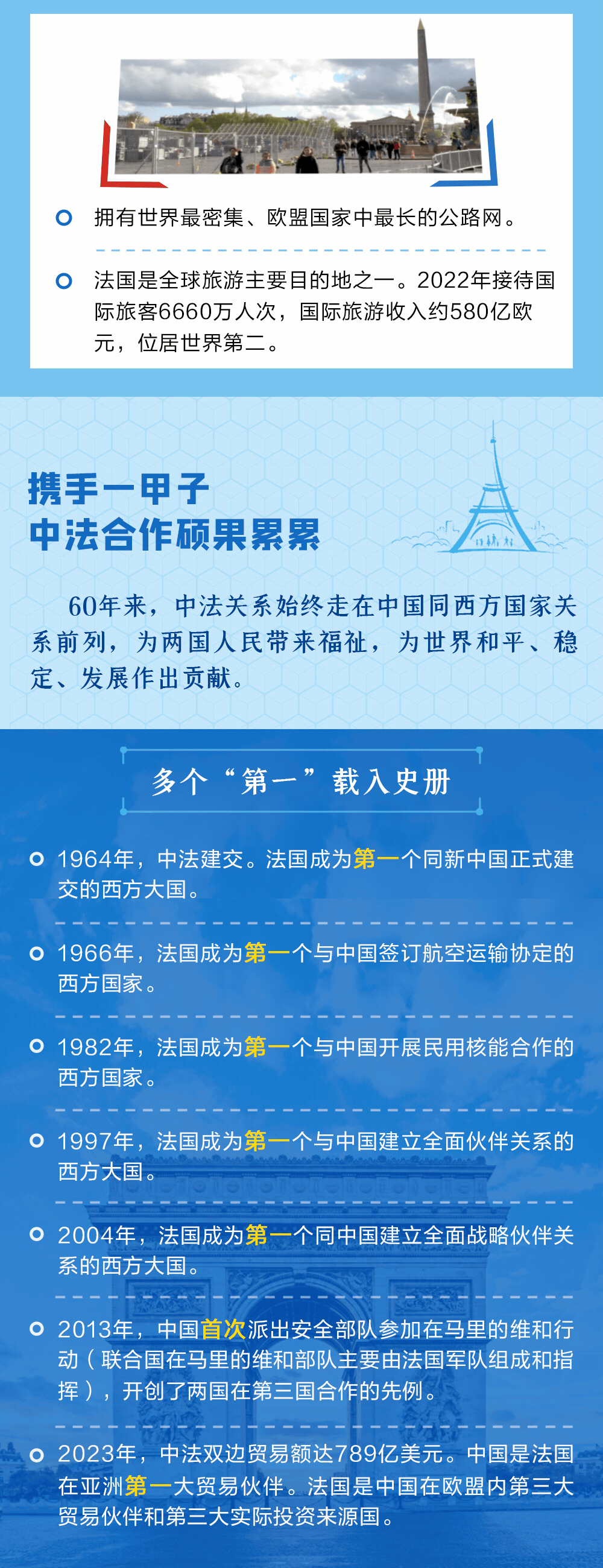 今年是中法建交60周年。60年來,秉承獨(dú)立自主、相互理解、高瞻遠(yuǎn)矚、互利共贏的“中法精神”,兩國關(guān)系走過了一段極不尋常的歷程。央視網(wǎng)《聯(lián)播+》特推出長圖,與您一同了解。