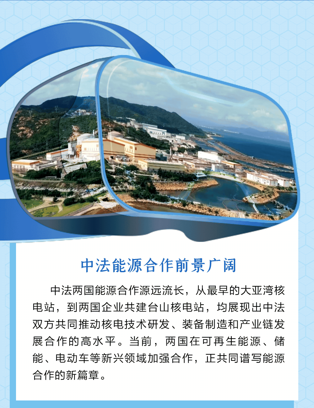 “法國是第一個同新中國正式建交的西方大國,也是最早同中國建立戰(zhàn)略伙伴關(guān)系和開展戰(zhàn)略對話、最早同中國開展民用核能合作的國家?!绷?xí)近平主席強(qiáng)調(diào),中法是特殊的朋友,共贏的伙伴。