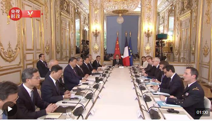 習(xí)近平指出,很高興應(yīng)邀在中法建交60周年之際,對法國進(jìn)行第三次國事訪問。雙方應(yīng)該堅(jiān)守獨(dú)立自主、相互理解、高瞻遠(yuǎn)矚、互利共贏的建交初心,并為其注入新的時(shí)代內(nèi)涵。在當(dāng)前世界百年變局、亂局下,中法要堅(jiān)持獨(dú)立自主,共同防止“新冷戰(zhàn)”或陣營對抗;要堅(jiān)持相互理解,共同促進(jìn)多彩世界的和諧共處;要堅(jiān)持高瞻遠(yuǎn)矚,共同推動平等有序的世界多極化;要堅(jiān)持互利共贏,共同反對“脫鉤斷鏈”、“筑墻設(shè)壘”。