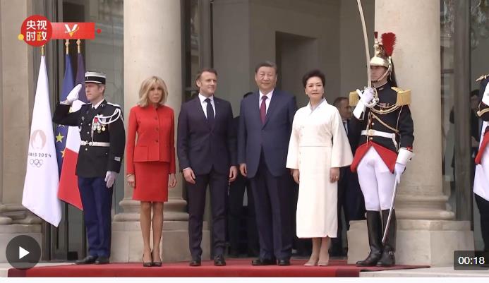 當?shù)貢r間5月6日下午,國家主席習近平和夫人彭麗媛乘車抵達愛麗舍宮。