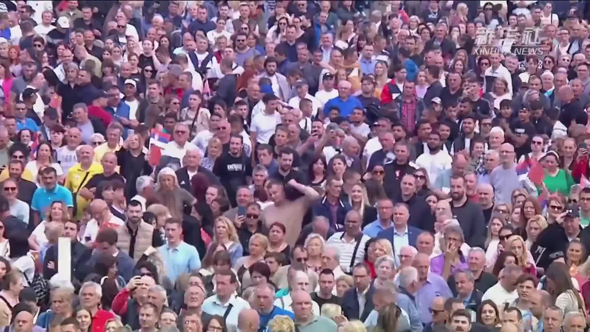 當(dāng)?shù)貢r(shí)間5月8日上午,國(guó)家主席習(xí)近平在貝爾格萊德塞爾維亞大廈同塞爾維亞總統(tǒng)武契奇舉行會(huì)談。會(huì)談前,武契奇陪同習(xí)近平來(lái)到政府大廈平臺(tái)(左圖)。大廈廣場(chǎng)上,一萬(wàn)五千名塞爾維亞民眾揮舞中塞兩國(guó)國(guó)旗,對(duì)習(xí)近平表示最熱烈的歡迎(右圖)。