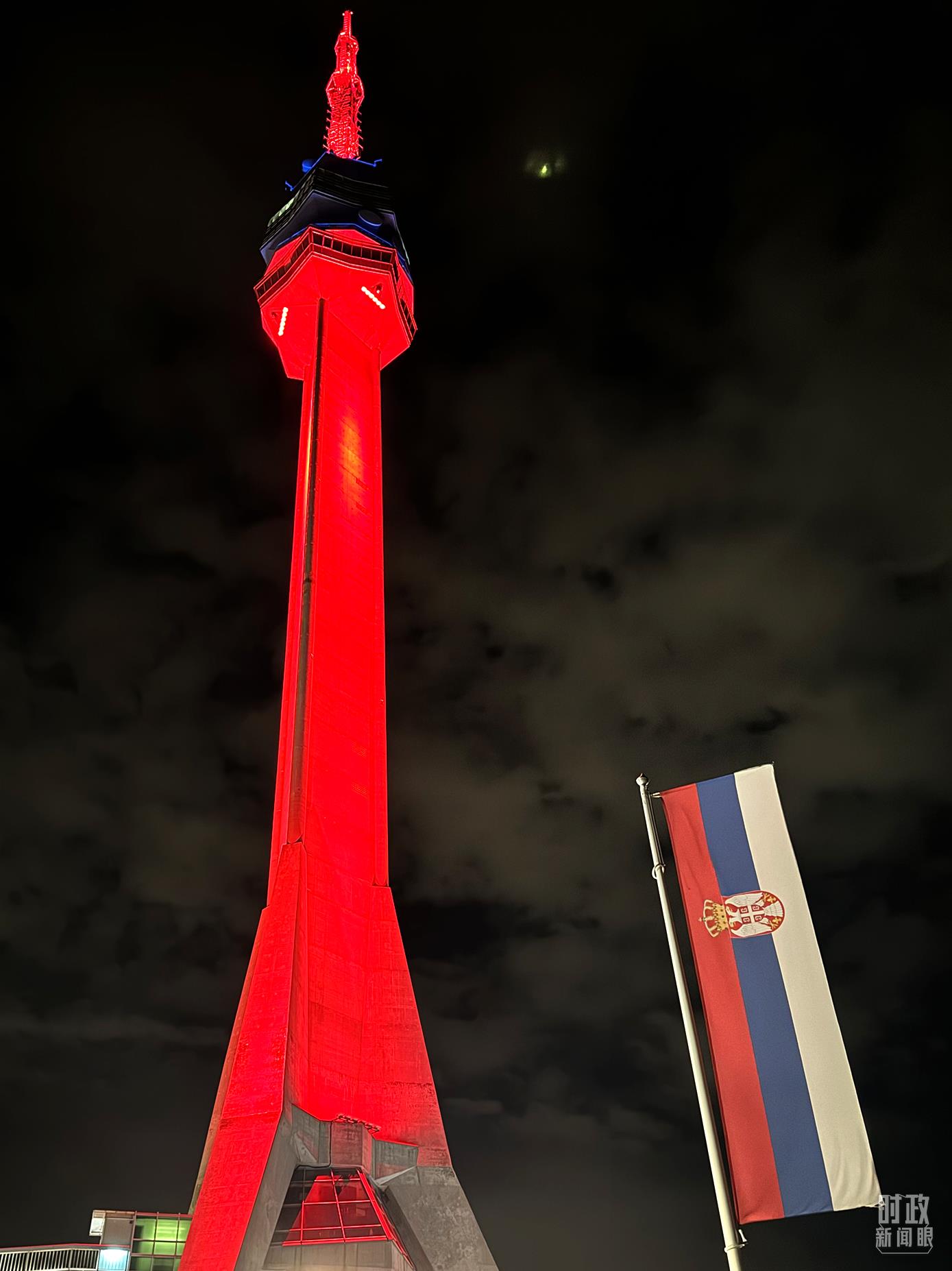 貝爾格萊德夜晚的中國紅。(總臺(tái)央視記者李增仁拍攝)