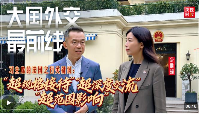 當?shù)貢r間5月7日,國家主席習近平成功結(jié)束對法國的國事訪問。作為習近平主席今年首次出訪的開篇之作,這次國事訪問取得了怎樣的成果?又有哪些亮點?“大國外交最前線”在中國駐法國大使官邸采訪中國駐法國大使盧沙野,共同回顧一次“超規(guī)格接待”“超深度交流”“超范圍影響”的國事訪問,共同期待“雙向奔赴”的中法關(guān)系越走越近。