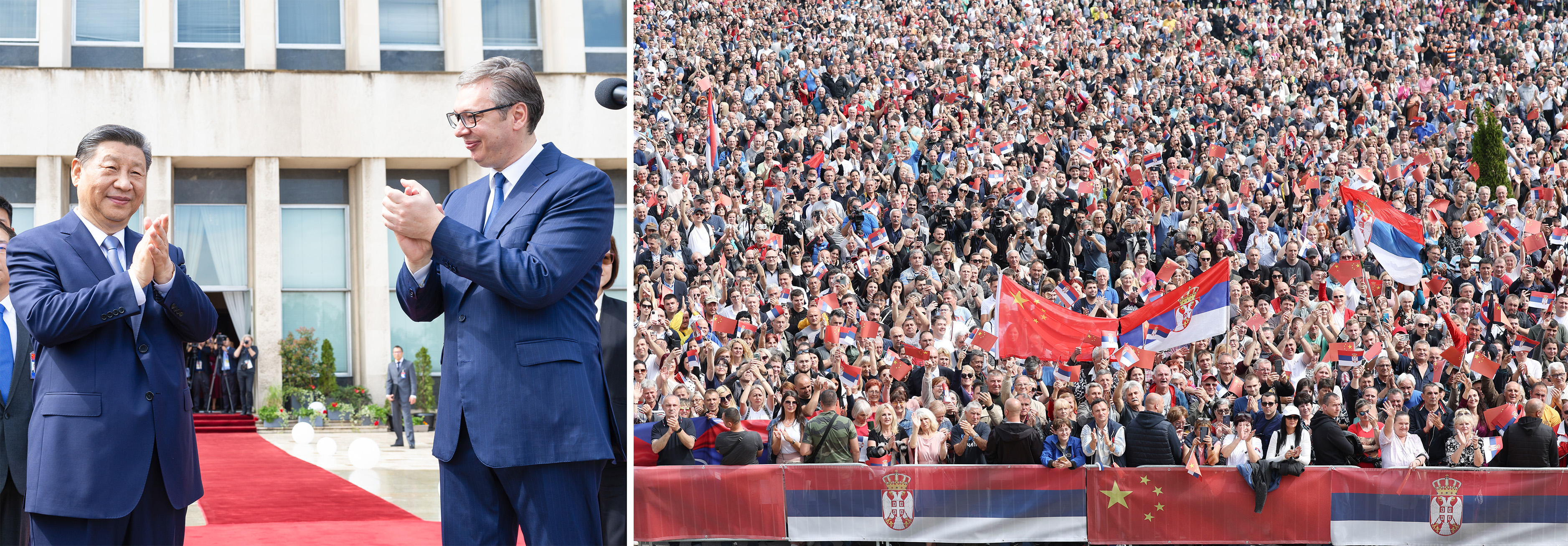 訪問塞爾維亞,習(xí)近平主席宣布中方支持新時代中塞命運共同體建設(shè)的首期6項務(wù)實舉措。武契奇總統(tǒng)表示,塞方堅定支持并將積極參與習(xí)近平主席提出的全球發(fā)展倡議、全球安全倡議、全球文明倡議,同中方密切多邊戰(zhàn)略協(xié)作,共同反對霸權(quán)強權(quán),維護聯(lián)合國憲章宗旨,捍衛(wèi)國際公平正義。