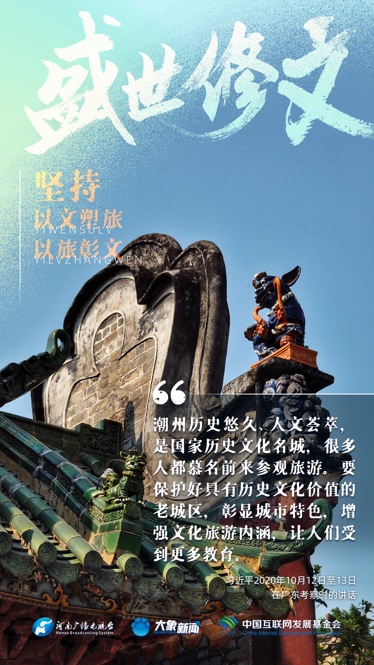 今天推出:習近平文化思想金句之《盛世修文|堅持以文塑旅、以旅彰文》