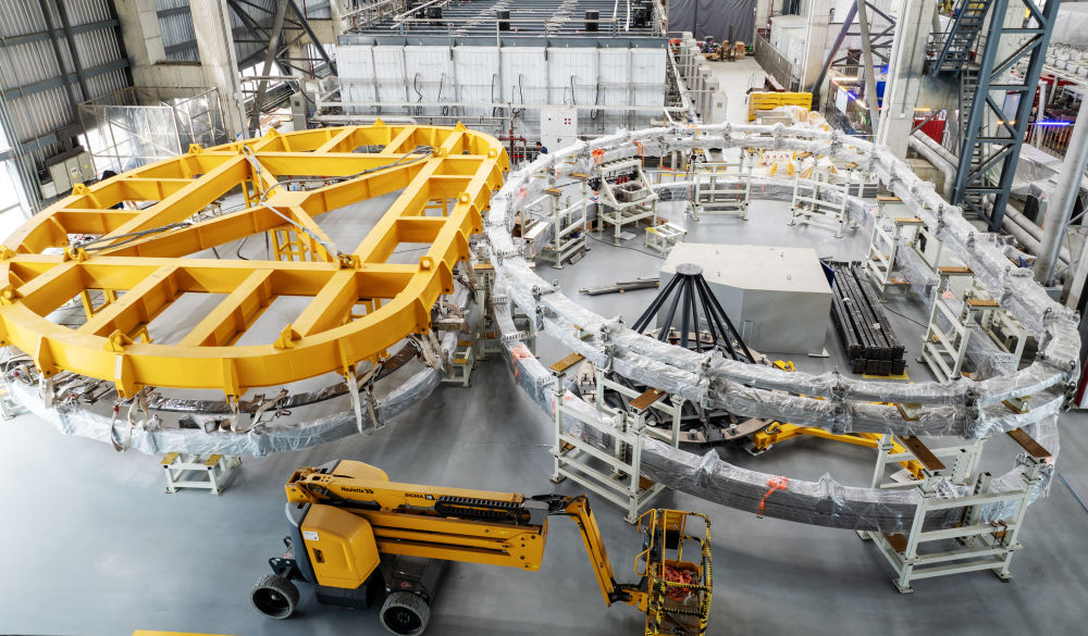 2024年5月27日在聚變堆主機(jī)關(guān)鍵系統(tǒng)綜合研究設(shè)施(CRAFT)園區(qū)內(nèi)拍攝的TF超導(dǎo)線圈生產(chǎn)線(無人機(jī)照片)。該研究設(shè)施將為未來中國聚變實(shí)驗(yàn)堆、工程堆的設(shè)計建設(shè),搭建參數(shù)高、性能全、功能完備的綜合性研究及測試平臺。